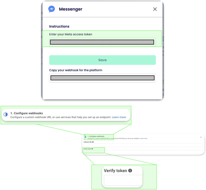 - Do the same with the 'Meta token' but in the 'Verification token' field of developer.facebook.com.