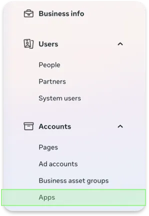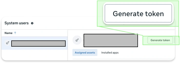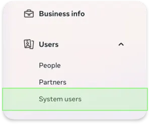 - Go to https://business.facebook.com/ 'Users' → 'System Users'.