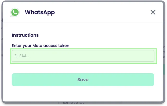 - In step 1 of the displayed form, click on 'Generate access token', log in to Facebook. Grant permission to all current and future WhatsApp accounts (this can be changed in the future) and save.