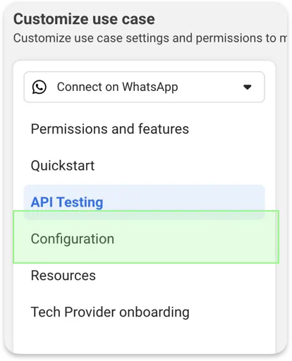 - In 'Use cases' select 'Connect with customers through WhatsApp'.