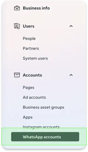 - Go to 'Accounts' → 'WhatsApp Accounts'.